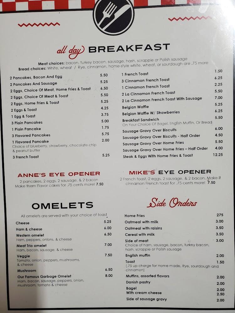 Anne's Pancakes features a diverse menu tailored for breakfast lovers and more. Start with their famous pancakes or delve into a hearty omelet. The lunch offerings include sandwiches and burgers, ensuring there's something for everyone. Each dish is crafted with care, celebrating classic American flavors.